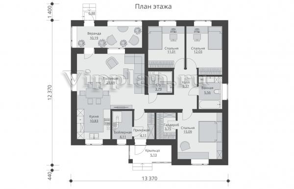 | Размеры дома: | 12.37м×13.37м |