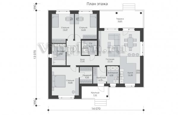 | Размеры дома: | 13.07м×14.07м |